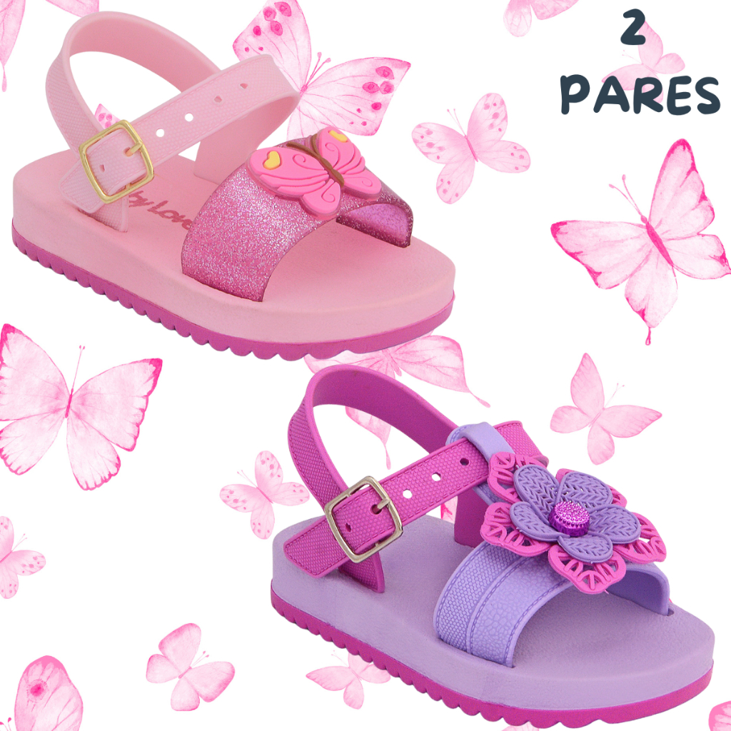 kit 2 Sandália bebe menina rasteirinha infantil feminina glitter borboleta cupcake lançamento