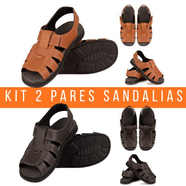 Kit 2 Sandalia masculina de Couro, Sola Alta de Alta qualidade e confortavel do 37ao 44 Original