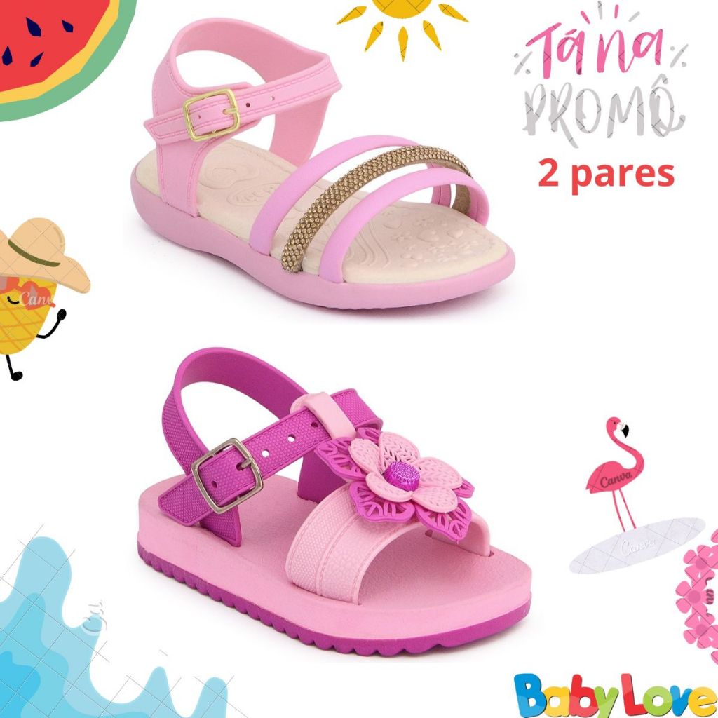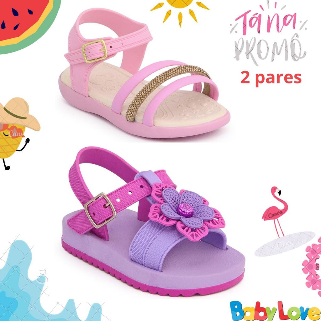 Kit 2 sandálias infantil menina bebê feminina promocão lançamento confortável