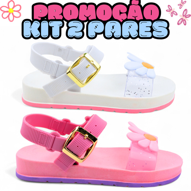 | Kit 2 Sandálias Margarida Infantil Feminina Antiderrapante Super Le... este produto | R$ 49,80 | 48% | 4.7/5 | 110 |