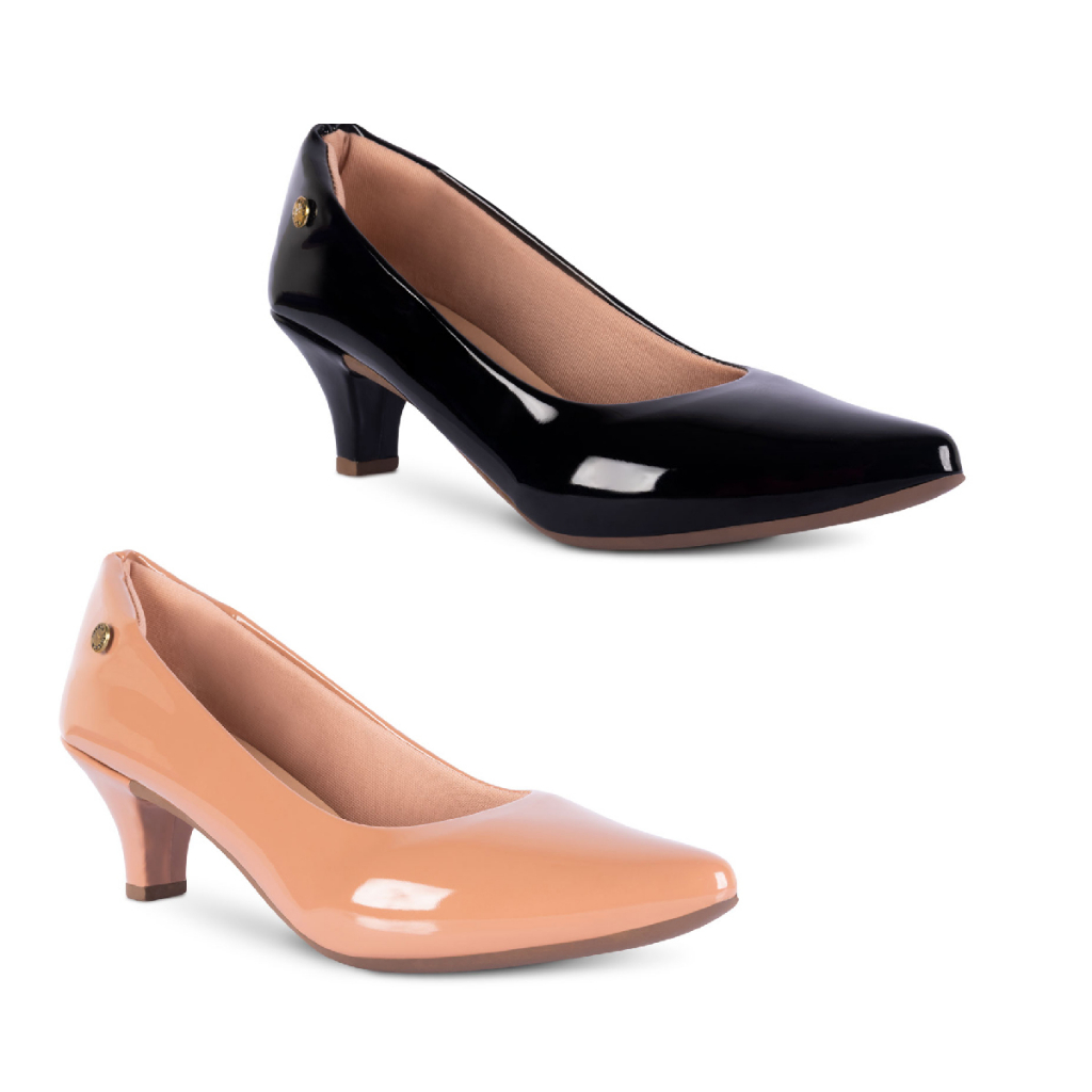 Kit 2 Sapato Scarpin Feminino Verniz Salto Baixo Fino Confortável R2.26