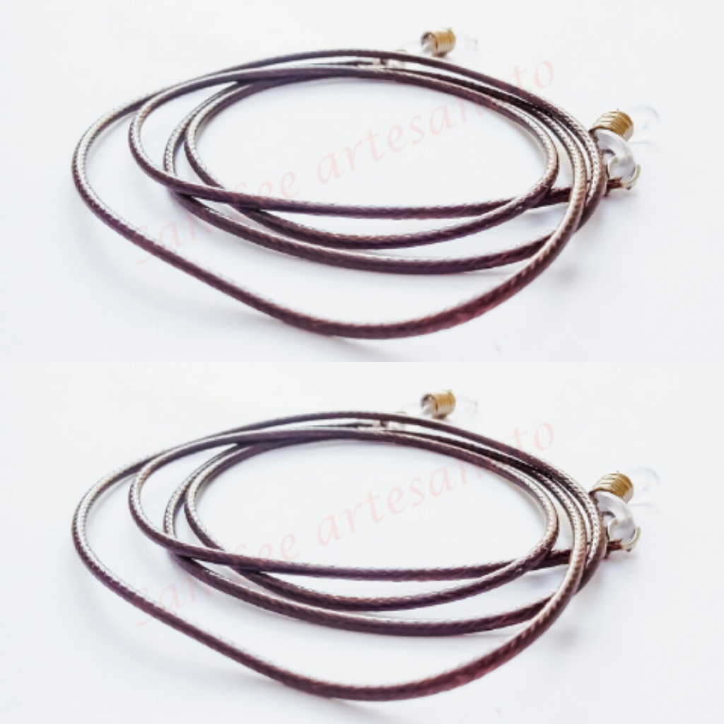 cordao para oculos semelhante a couro sintetico. Bem fino e maleavel. Modelo basico para quem quer um cordao de oculos com melhor acabamento. Possuem fechos com silicone e molas, permitindo regulagem em qualquer espessura de hastes. kit com 2 cordões. várias cores disponiveis fechos cor prateado 2 milímetros de espessura. tamanho 70cm