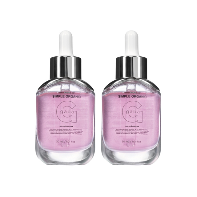 Duo Solução Gaba Simple Organic Tagline: Efeito lifting e hidratante, indicado para firmeza, elasticidade e redução de linhas de expressão. Benefícios do produto: Efeito lifting 15 min após a aplicação Aumenta a firmeza da pele Fortalece a barreira da pele Reduz linhas de expressão Hidrata e fortalece a barreira cutânea Descrição: O Duo Solução Gaba é a escolha certa para quem busca firmeza e viço com fórmula 100% natural e vegana. Com ação lifting visível, esse combo traz duas unidades da nossa solução com Ácido Gama-Aminobutírico (Gaba), um ativo inovador no skincare, conhecido por suavizar linhas de expressão ao promover o relaxamento da pele. A Solução Gaba estimula a produção natural de colágeno, Ácido Hialurônico e Filagrina, fortalecendo a barreira cutânea, hidratando e melhorando a elasticidade da pele. Sua ação well-aging é ideal para peles maduras ou para quem quer manter a firmeza e o glow ao longo do tempo. Além de reduzir os sinais do envelhecimento, também ajuda a equilibrar o microbioma, deixando a pele mais saudável e protegida. Pode ser usada de dia ou à noite, com textura leve e fácil absorção. Um duo multifuncional que une tecnologia, natureza e resultados visíveis. Volume: 30 mL (cada). Ingredientes: Ativos: Ácido Gama-Aminobutírico. Composição: Aqua, Pentylene Glycol, Glycerin, Propanediol, Parfum*, Aminobutyric Acid, Xanthan Gum, Biosaccharide Gum-1, Maltodextrin, Beta Vulgaris Root Extract, Sodium Levulinate, Limonene, Glyceryl Caprylate, Sodium Anisate, Hydroxycitronellal. *Origem Natural. Composição (português): Água, Pentilenoglicol, Glicerol, Propanodiol, Perfume*, Ácido Gamaminobutírico, Goma Xantana, Goma Biossacarídea-1, Maltodextrina, Extrato Da Raiz De Beta Vulgaris, Levulinato De Sódio, Limoneno, Caprilato De Glicerila, Anisato De Sódio, Hidroxicitronelal. *Origem Natural. Como usar: Aplique algumas gotas no rosto limpo e massageie com as mãos até sua completa absorção. Onde usar: Rosto. Quantidade: 3 gotas. Quando usar: Uso diurno e noturno, após a limpeza da pele. Tipo de pele: Variados tipos de pele, especialmente as maduras. Acabamento: Pele iluminada, macia e hidratada. Textura: Líquida. Precauções: Uso externo. Manter longe do alcance de crianças. Evitar contato com os olhos. Armazenar em local seco, arejado, ao abrigo da luz e outras fontes de calor. Em caso de irritação, suspenda o uso e, se os sinais persistirem, procure um médico. Utilize protetor solar.