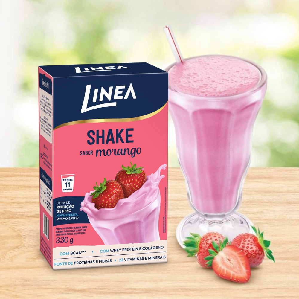 Linea Shake Premium Morango é um equilíbrio perfeito de sabor e nutrição. Sem açúcares adicionados, oferece whey protein, colágeno, BCAA, 23 vitaminas e minerais. Substitui até 11 refeições, ideal para redução de peso (2/dia) ou manutenção (1/dia). Nutrição completa com prazer em cada gole. 1 KIT COMPOSTO POR: - 2 Unidades de Shake Em Pó Linea Sabor Morango 330g (cada). INGREDIENTES: Maltodextrina, farinha de soja integral, leite em pó desnatado, mix de vitaminas e minerais (fosfato de potássio di básico, citrato tripotássico monohidratado, fosfato de magnésio monohidratado, vitamina C, pirofosfato férrico, niacina, vitamina E, sulfato de zinco monohidratado, ácido pantotênico, vitamina B6, sulfato de manganês monohidratado, vitamina B2, vitamina B1, sulfato cúprico, vitamina A, iodeto de potássio, ácido fólico, selenito de sódio, picolinato de cromo, biotina, vitamina D, vitaminaB12), composto lácteo (whey protein), colágeno hidrolisado, suco de morango desidratado, óleo de girassol, espessantes: polidextrose e goma xantana, aromatizante, anti umectante dióxido de silício, regulador de acidez fosfato tricálcico, edulcorantes: sucralose e acesulfame de potássio e corante amaranto. ALÉRGICOS: CONTÉM DERIVADOS DE SOJA E LEITE. PODE CONTER AMENDOIM. CONTÉM LACTOSE. NÃO CONTÉM GLÚTEN.