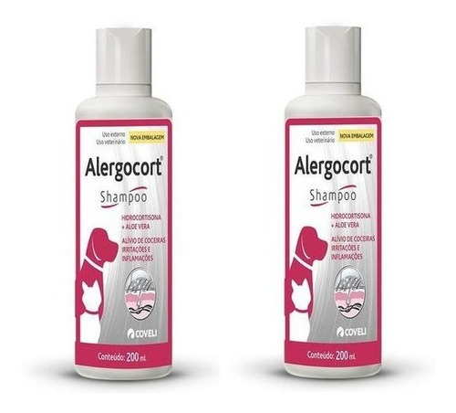 Kit 2 Shampoo Antialérgico Coveli Alergocort para Cães e Gatos - 200 mL