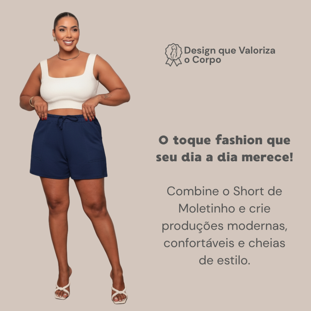Kit 2 Short Feminino Moletinho Bermuda Plus Size Godê Bolso Frontal Confortavel Soltinho