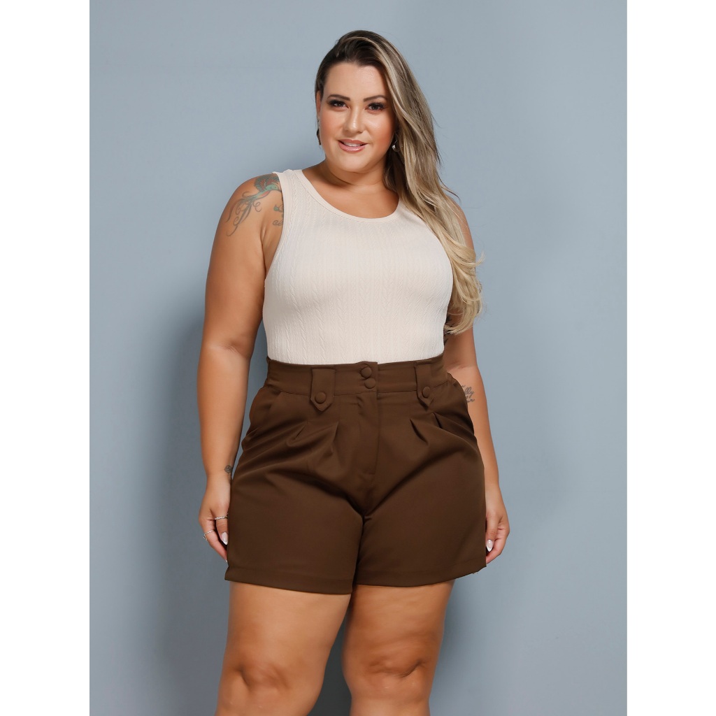 Nosso short em alfaiataria plus size é uma combinação perfeita de elegância e conforto. Com corte clássico, Elastico atras na cintura . bolsos funcionais, esta peça social é ideal para diversas ocasiões. Disponível nos tamanhos G1 (veste 46-48), G2 (veste 50-) e G3 (veste 52-), oferece um ajuste impecável para valorizar todas as curvas. Uma expressão de estilo atemporal e sofisticação, redefinindo a moda plus size com excelência. Não perca a oportunidade de adicionar essa peça versátil e elegante ao seu guarda-roupa. Garanta ja o seu! Material: Alfaiataria : composto por 96% de poliéster e 4% de elastano (Pouco Elastano) G1; COMPRIMENTO; 45CM. QUADRIL;124CM. CINTURA; 92CM G2;COMPRIMENTO; 45CM. QUADRIL;130CM. CINTURA; 98CM G3;COMPRIMENTO; 46CM. QUADRIL;136CM. CINTURA; 106CM MEDIDAS DA ***MODELO*** :ela usando tamanho G1 Busto 109 Cintura 95 Quadril 123 Altura 1,67 Manequim 48 Peso 95 kilos