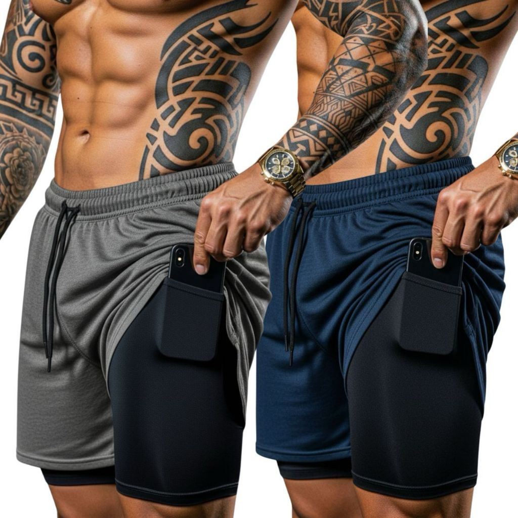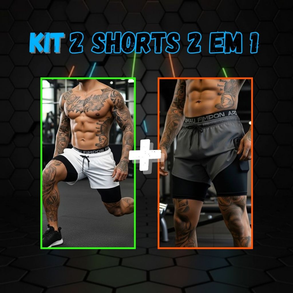 Kit 2 Shorts 2 em 1 Masculina Esportiva Academia Treino Crossfit Top 01