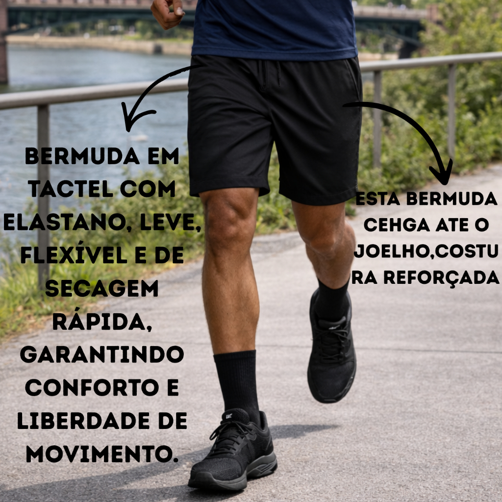 Shorts Bermudas Masculino Nos dias quentes de verão, encontrar conforto é essencial. Introduzimos nossa mais recente linha de shorts projetados especificamente para proporcionar frescor e versatilidade em cada uso. Nossa coleção de shorts é uma solução prática para enfrentar o calor sem comprometer o estilo ou o conforto. Características Principais: Tecido Refrescante: Fabricado com microfibra de alta qualidade com elastano, nossos shorts proporcionam uma sensação refrescante ao toque, ideal para dias quentes. O tecido leve e respirável permite uma circulação de ar adequada, mantendo você fresco e confortável durante todo o dia. Conforto para o Dia-a-Dia: Com um ajuste confortável e flexível, nossos shorts são ideais para uso diário. Seja para um passeio pela cidade, uma tarde na praia ou uma atividade ao ar livre, você se sentirá confortável e confiante em nossos shorts. Benefícios Adicionais: Durabilidade Superior: Construídos com materiais de alta qualidade e técnicas de fabricação premium, nossos shorts são duráveis e resistentes ao desgaste, garantindo uma vida útil prolongada. Facilidade de Manutenção: Fáceis de cuidar, nossos shorts podem ser lavados à máquina e mantêm sua integridade mesmo após várias lavagens. Bolsos: 2 Bolsos nas Laterais. Composição: 92% Poliéster 8% Elastano.