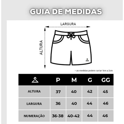 Kit 2 Shorts Casal Aranha Conjunto Tactel 100% Poliéster / Tactel Medidas Masculino (Cm) P Comprimento 41 Largura 56 Gancho 68 M Comprimento 42 Largura 60 Gancho 69 G Comprimento 43 Largura 62 Gancho 70 GG Comprimento 46 Largura 66 Gancho 71 Medidas Feminino (Cm) P Comprimento 26 Largura 50 Gancho 60 M Comprimento 27 Largura 53 Gancho 62 G Comprimento 28 Largura 56 Gancho 64 GG Comprimento 29 Largura 69 Gancho 66