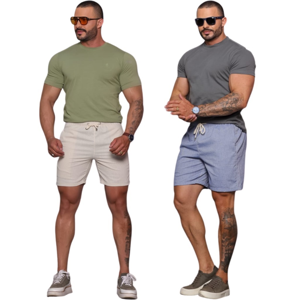 Kit 2 Shorts De Linho Mauricinho Premium Bermudas Masculina Com Bolso