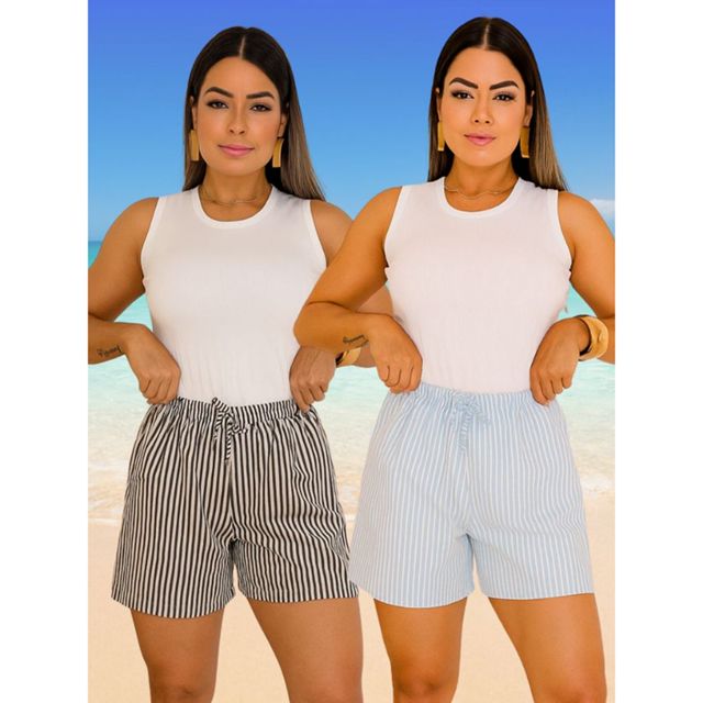 | Kit 2 Shorts Feminino Listrado Crepinho Top com Cós Elástico e Laci... este produto | R$ 37,90 | 36% | 4.8/5 | 105 |