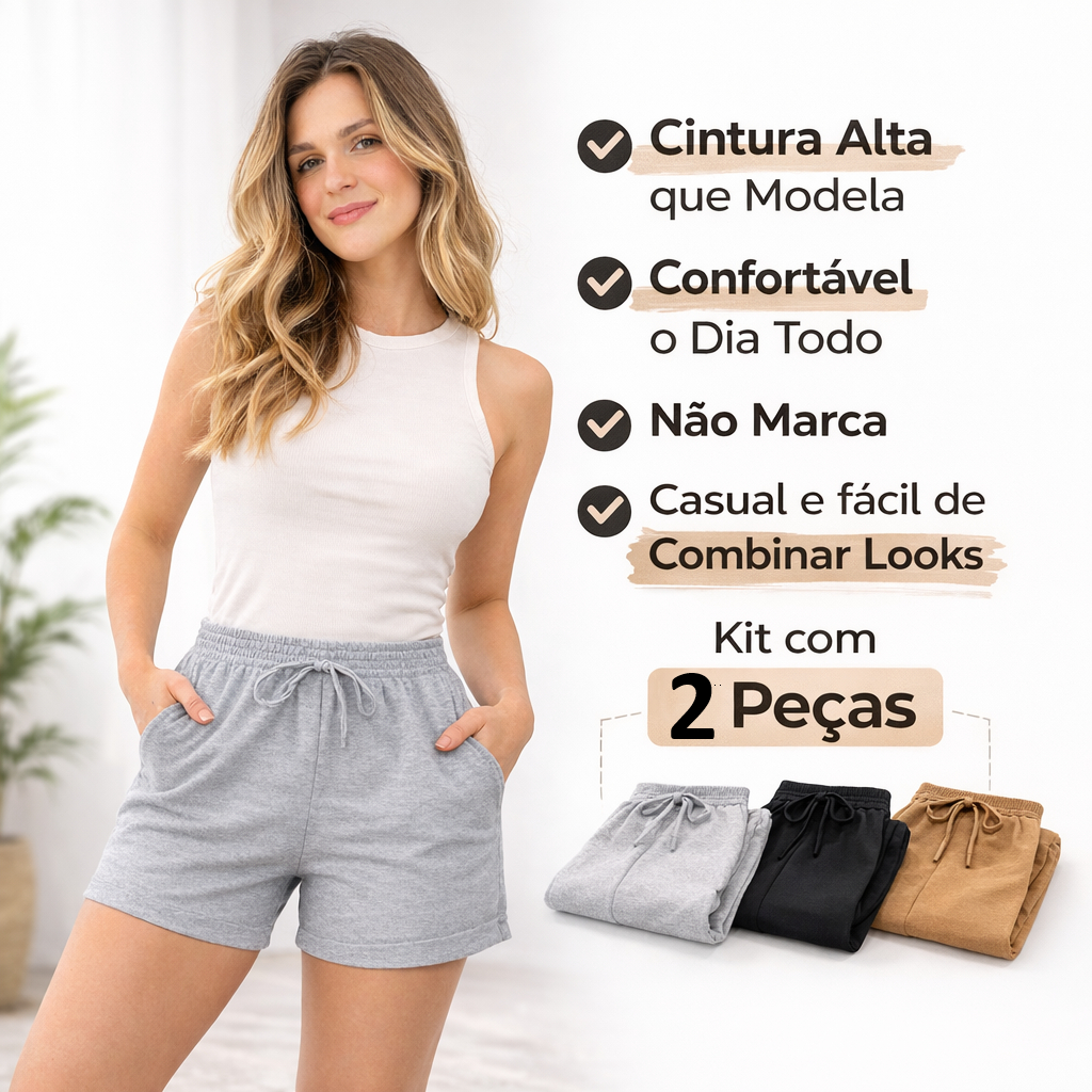 Kit 2 Shorts Moletom Feminino Cintura Alta Confortável