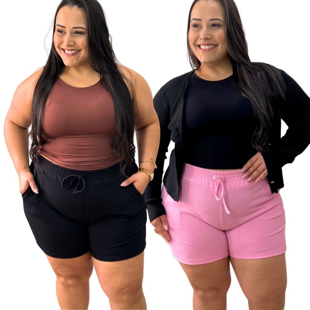 | Kit 2 Shorts Plus Size Feminino Malha Crepe Premium Zero Transparên... este produto | R$ 57,60 | 36% | 4.9/5 | — |