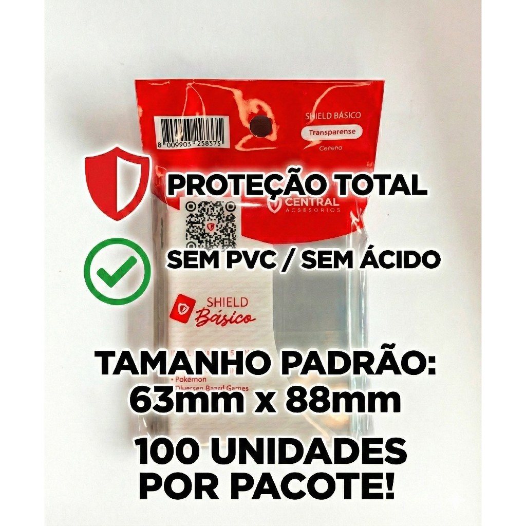 🛡️ Proteção Premium com o Melhor Custo-Benefício para sua Coleção! Você investe na sua coleção, nós investimos na proteção dela. O Sleeve Central Shield Básico Transparente é a escolha inteligente para jogadores e colecionadores que buscam qualidade sem pagar uma fortuna. Desenvolvido pela Central Acessórios, este shield oferece a transparência cristalina que suas cartas merecem, mantendo-as seguras contra arranhões, poeira, oleosidade das mãos e desgaste do embaralhamento. ✅ DESTAQUES DO PRODUTO: Segurança Total (Archival Grade): Produzido com material de alta qualidade, SEM PVC e SEM ÁCIDO. Isso significa que seus cards não vão amarelar, grudar ou sofrer danos químicos com o tempo. Perfeito para arquivar cartas valiosas. Transparência Cristalina: Não esconde a beleza da arte da sua carta. Ideal para exibir cards holográficos (foil) sem perder o brilho. Encaixe Padrão (Standard Size): Medida exata de 63mm x 88mm. O fit perfeito para a grande maioria dos card games modernos. Pacotão Econômico: Cada pacote contém 100 unidades de sleeves. 🎮 IDEAL PARA OS JOGOS: Magic: The Gathering (MTG) Pokémon TCG One Piece Card Game Photocards de K-pop (Tamanho padrão) Exploding Kittens Carta Nostra E qualquer outro board game que utilize cartas no tamanho padrão (63.5 x 88mm). ⚙️ ESPECIFICAÇÕES TÉCNICAS: Marca: Central Acessórios Modelo: Shield Básico Transparente Cor: Totalmente Transparente (Frente e Verso) Tamanho: 63mm x 88mm (Padrão/Standard) Quantidade por pacote: 100 Sleeves Material: Polipropileno (Sem PVC/Ácido) Condição: Novo, Lacrado e Original. 📦 O QUE VOCÊ RECEBE: 2 Pacote com 100 Sleeves (Total 200 un.) Garanta a longevidade do seu deck ou coleção com a Central Shield!