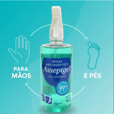 ✨ KIT 2 SPRAY ANTISSÉPTICO COM CLOREXIDINA ASSEPTGEL 500ML ✨ 🛡️ Proteção Máxima e Praticidade Diária! O Kit 2 Spray Antisséptico Asseptgel com Clorexidina é a solução definitiva para higiene e proteção. Com uma fórmula de alta eficácia, ele garante a assepsia completa de mãos e superfícies. Tenha tranquilidade e segurança em dobro onde quer que você esteja! 📋 Características do Produto. * Conteúdo: Kit com 2 unidades de Spray Antisséptico. ✌️ * Volume: 500ml por frasco. 💧 * Princípio Ativo: Contém Digliconato de Clorexidina (0,3% p/p) e Álcool Etílico (70% p/p). * Ação: Potente ação antisséptica, bactericida e fungicida. 🦠❌ * Aplicação: Formato spray, prático e de fácil uso. 💨 * Uso: Ideal para desinfecção de mãos e superfícies. * Dispensa Enxágue: Assepsia rápida, não precisa de água nem toalha. * Segurança: Dermatologicamente testado. ✅ * Fórmula: Biodegradável. 🌍 🎁 Benefícios Incomparáveis. * Alto Poder de Eliminação: Mata 99,9% dos germes e bactérias comuns. 💪 * Economia e Conveniência: Embalagem dupla para você ter sempre em casa, no trabalho ou em locais de grande circulação. * Secagem Rápida: Não deixa resíduos pegajosos após a aplicação. * Proteção Prolongada: A Clorexidina oferece uma ação residual, mantendo a proteção por mais tempo. * Higiene Instantânea: Solução ideal para a higienização quando água e sabão não estão disponíveis. 🏃♀️ * Versatilidade: Perfeito para a família, profissionais de saúde e uso geral no dia a dia. ❓ Perguntas Comuns. ❔Este spray pode ser usado em ferimentos? R: O Digliconato de Clorexidina é indicado para a antissepsia da pele e pequenos ferimentos, mas sempre consulte um médico ou profissional de saúde para orientações específicas, especialmente sobre o uso em feridas abertas ou irritadas. ❔Qual a diferença entre o spray com Clorexidina e o Álcool Gel comum? R: Ambos são antissépticos. O Spray Asseptgel contém 70% de Álcool Etílico e ainda adiciona Clorexidina, que é um potente agente que oferece uma ação residual (proteção prolongada) contra microrganismos. ❔Posso usar o produto para desinfetar superfícies como bancadas e maçanetas? R: Sim, a fórmula eficaz é projetada para desinfetar tanto mãos quanto superfícies, garantindo um ambiente mais seguro. 🏠 ❔É necessário enxaguar as mãos após o uso? R: Não! A fórmula é "sem enxágue", basta aplicar uma pequena quantidade nas mãos ou pés e esfregar até secar completamente. Praticidade total! 👍 ❔Qual a validade do produto? R: O prazo de validade é de 2 anos a partir da data de fabricação. Verifique a data impressa na embalagem para maior precisão. 🗓️