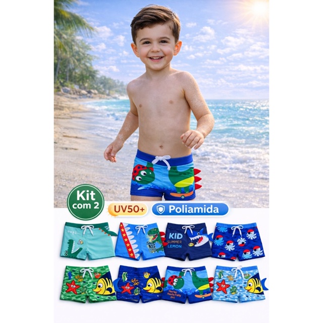 | Kit 2 Sunga Infantil 3D Proteção UV50+ Forrada Moda Praia Menino Ve... este produto | R$ 68,90 | — | 5.0/5 | 1 |