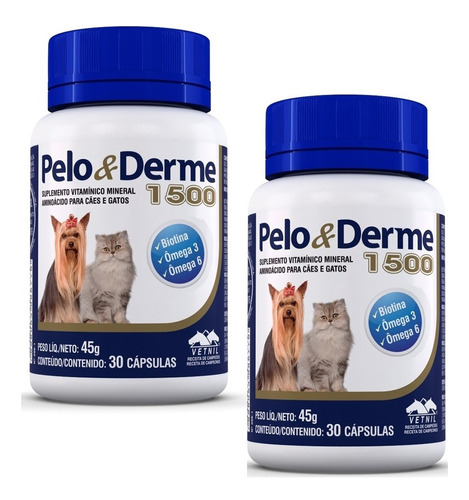 Kit 2 Suplemento Vetnil Pelo & Derme DHA + EPA 1500 - 30 Cápsulas