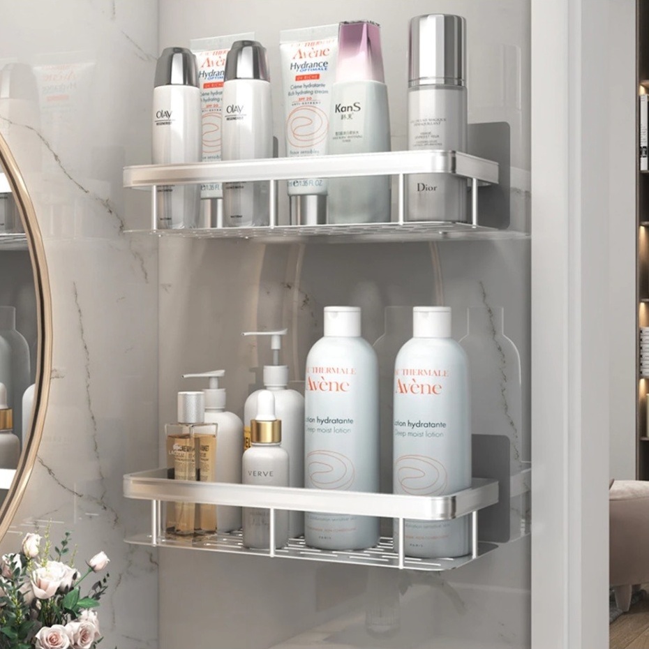 KIT 2 Suporte de Shampoo Organizador Cromado Inox Prateleira Sem Furo Banheiro Premium