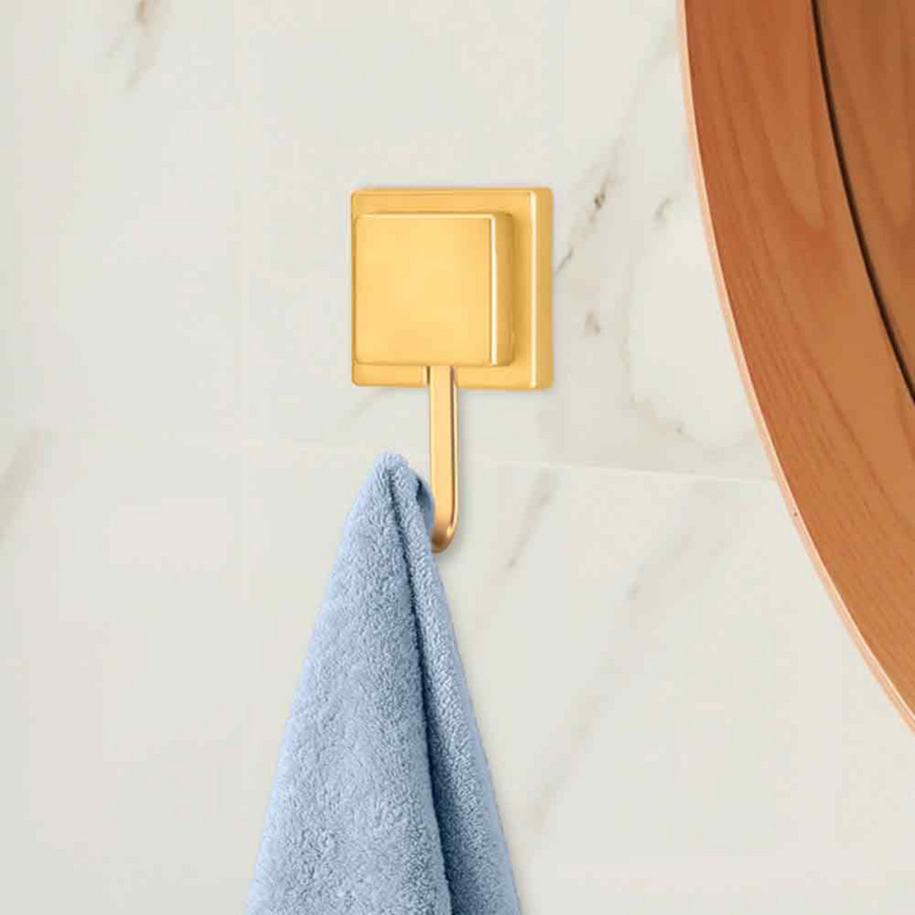 Kit 2 Suporte Porta Toalha De Banho Gancho Dourado Fita Dupla Face 3m