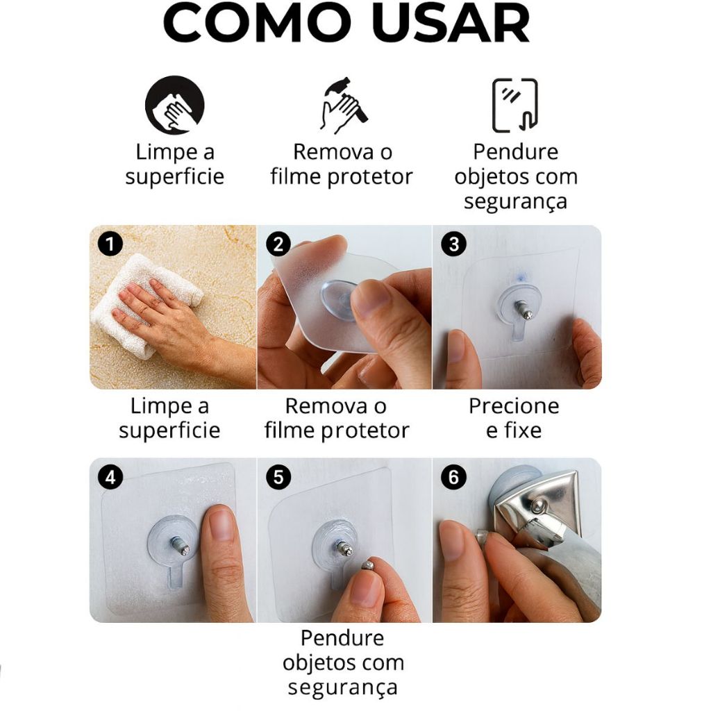 Postagem Imediata: Garantimos o envio no mesmo dia útil da compra! ✨ Praticidade, resistência e instalação rápida — tudo isso sem furar a parede! O Kit com 2 Unidades de Suportes Adesivos com Parafuso Integrado é a solução perfeita para fixar prateleiras, suportes, barras, nichos e acessórios de forma segura e duradoura. Ideal para quem busca organização e facilidade no dia a dia, sem sujeira e sem complicação. ✅ Por que escolher este suporte adesivo? 🔩 Parafuso integrado reforçado Vem com rosca metálica firme, permitindo fixação de estruturas como prateleiras, suportes, cabideiros, barras e muito mais. 🛠️ Instalação sem furos e sem ferramentas Basta limpar a superfície, remover o filme protetor e pressionar — pronto para usar! 💪 Adesão superforte Desenvolvido com base adesiva premium, oferece fixação firme e segura em superfícies lisas. 💧 À prova d’água Perfeito para banheiros, cozinhas e áreas úmidas, mantendo a fixação mesmo em contato com água. 🧱 Compatível com várias superfícies Ideal para: ✔ Azulejo ✔ Vidro ✔ Madeira tratada ✔ Metal Personalize sua compra selecionando a quantidade ideal para suas necessidades na opção de variação abaixo.