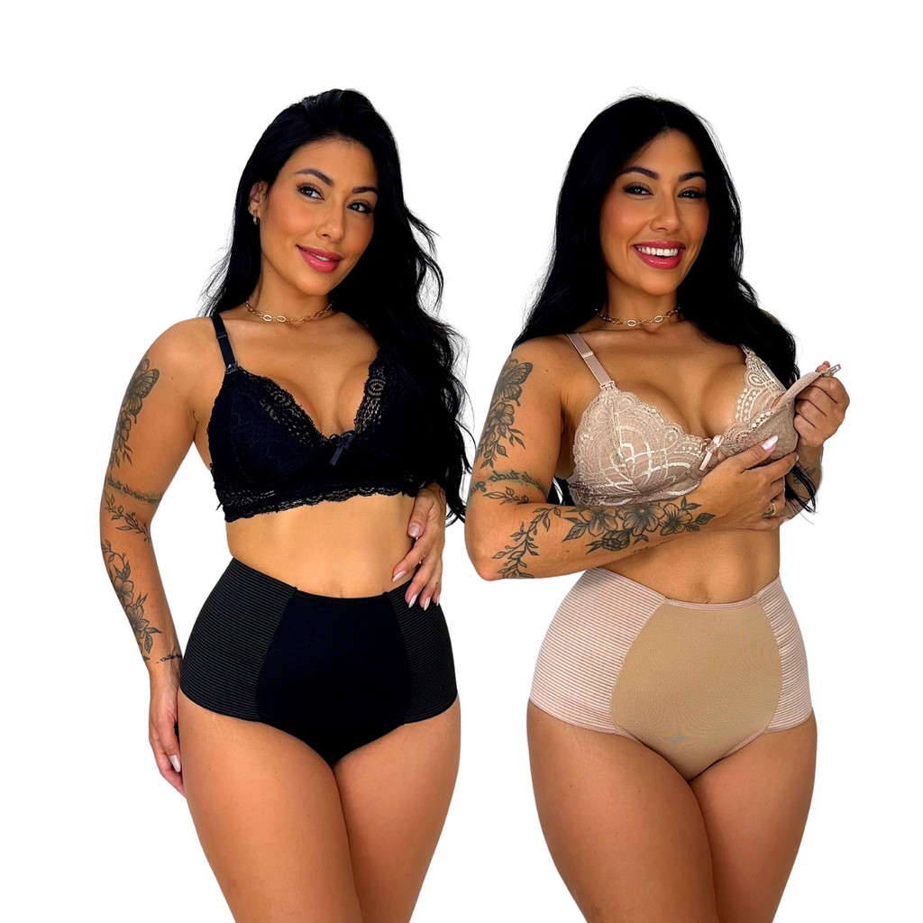 Kit 2 Sutiã de Amamentação Sem Bojo Reforçado e 2 Calcinha Pós Parto Cinta Modeladora Gestante