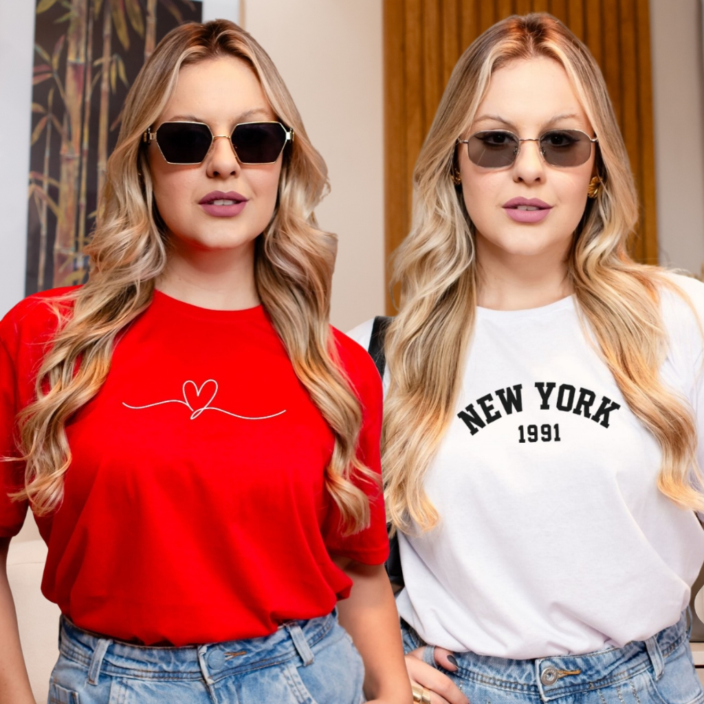 Kit 2 T-Shirt Feminina Estampada Camiseta 100% Algodão Estilosa Envio Imediato