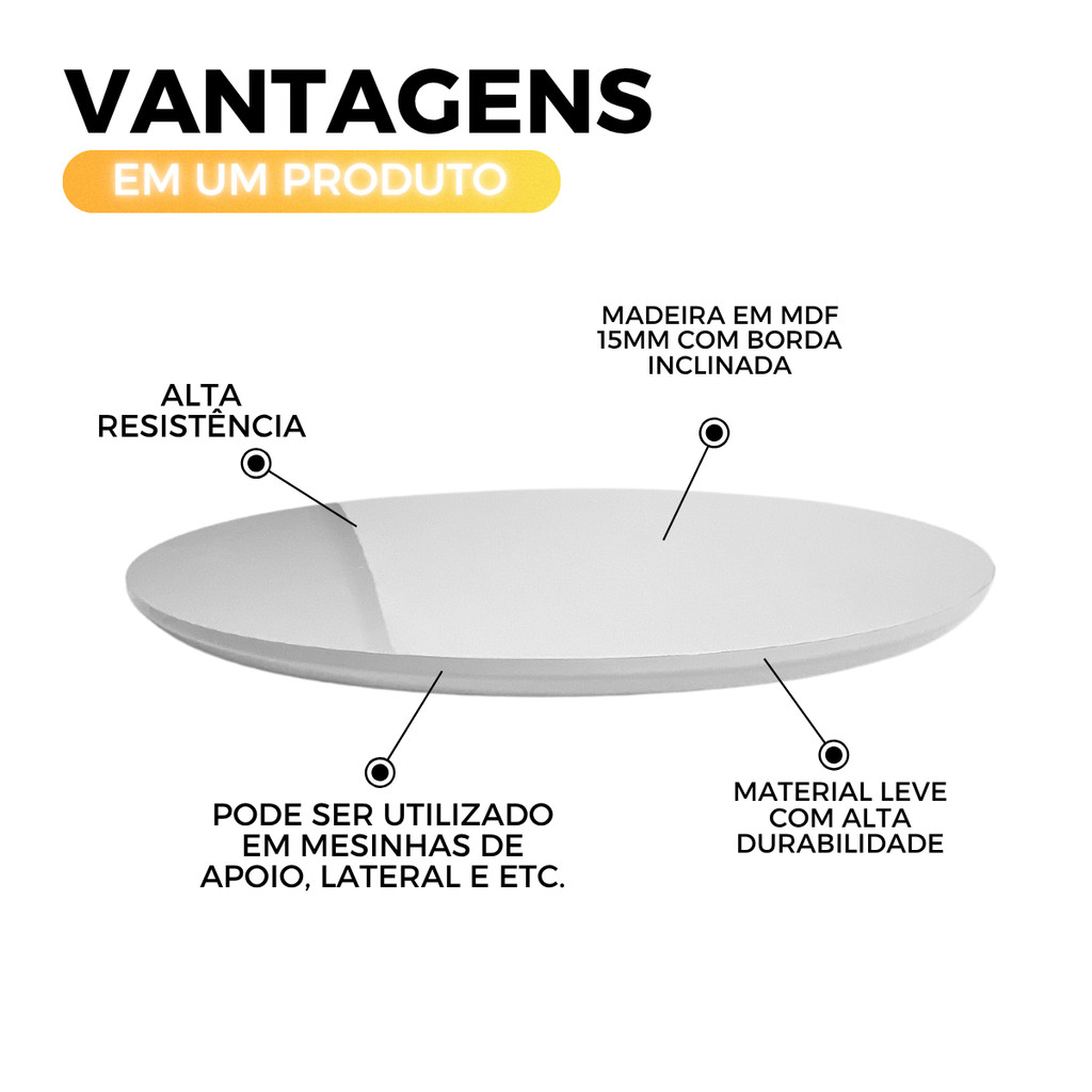 | Kit 2 Tampo De Madeira MDF Redondo 45cm Para Mesa Mesinha Apoio Lat... este produto | R$ 64,99 | 53% | 5.0/5 | — |
