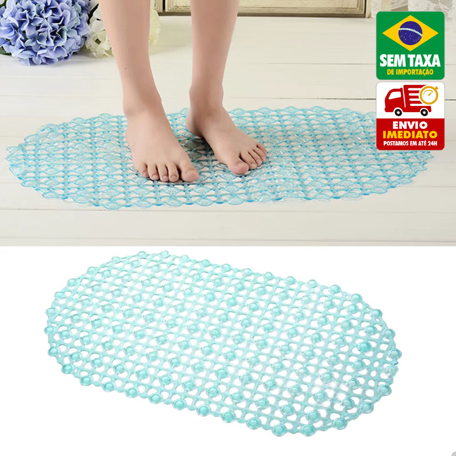 Kit 2 Tapete Antiderrapante Box Banheiro 66cm Silicone com Ventosa Azul Rosa Branco Segurança