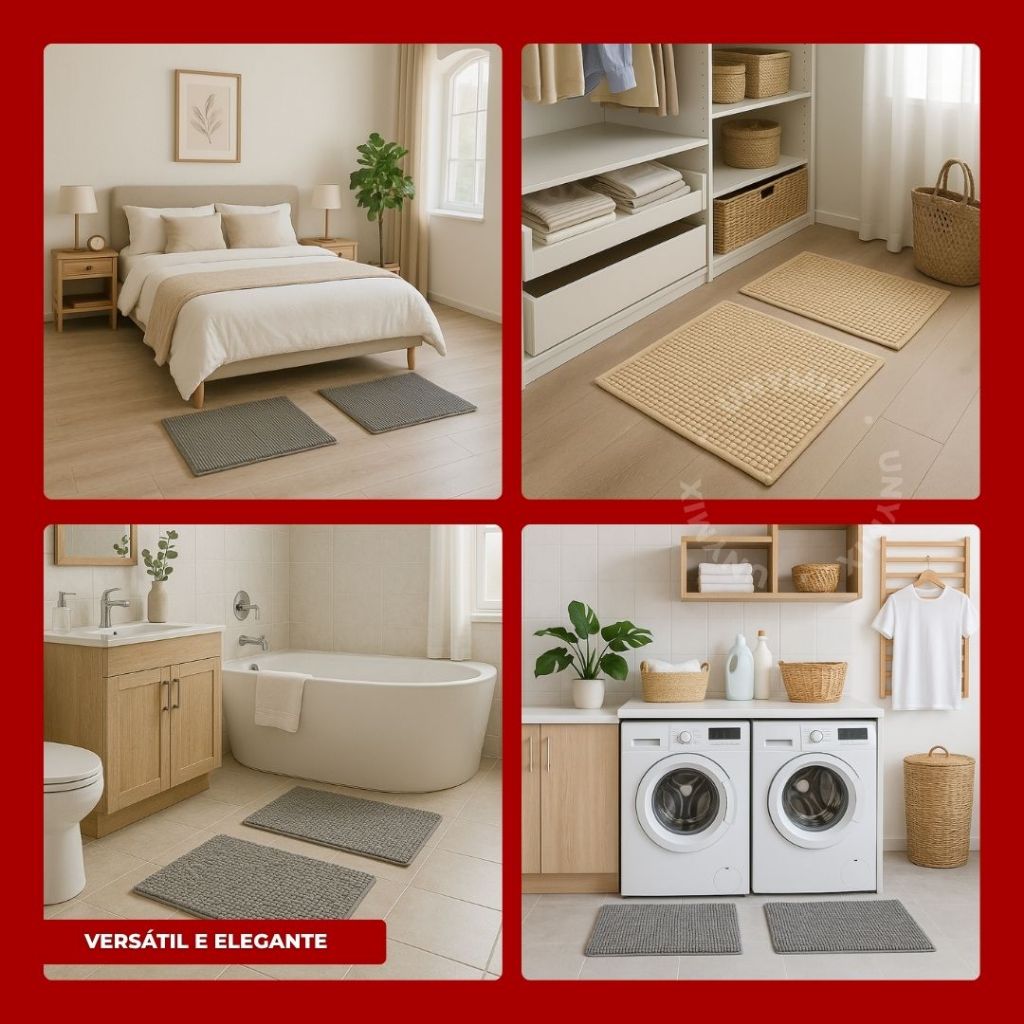 Kit 2 Tapete Banheiro Antiderrapante Bolinha Macarrão Microfibra Luxo 60x40cm