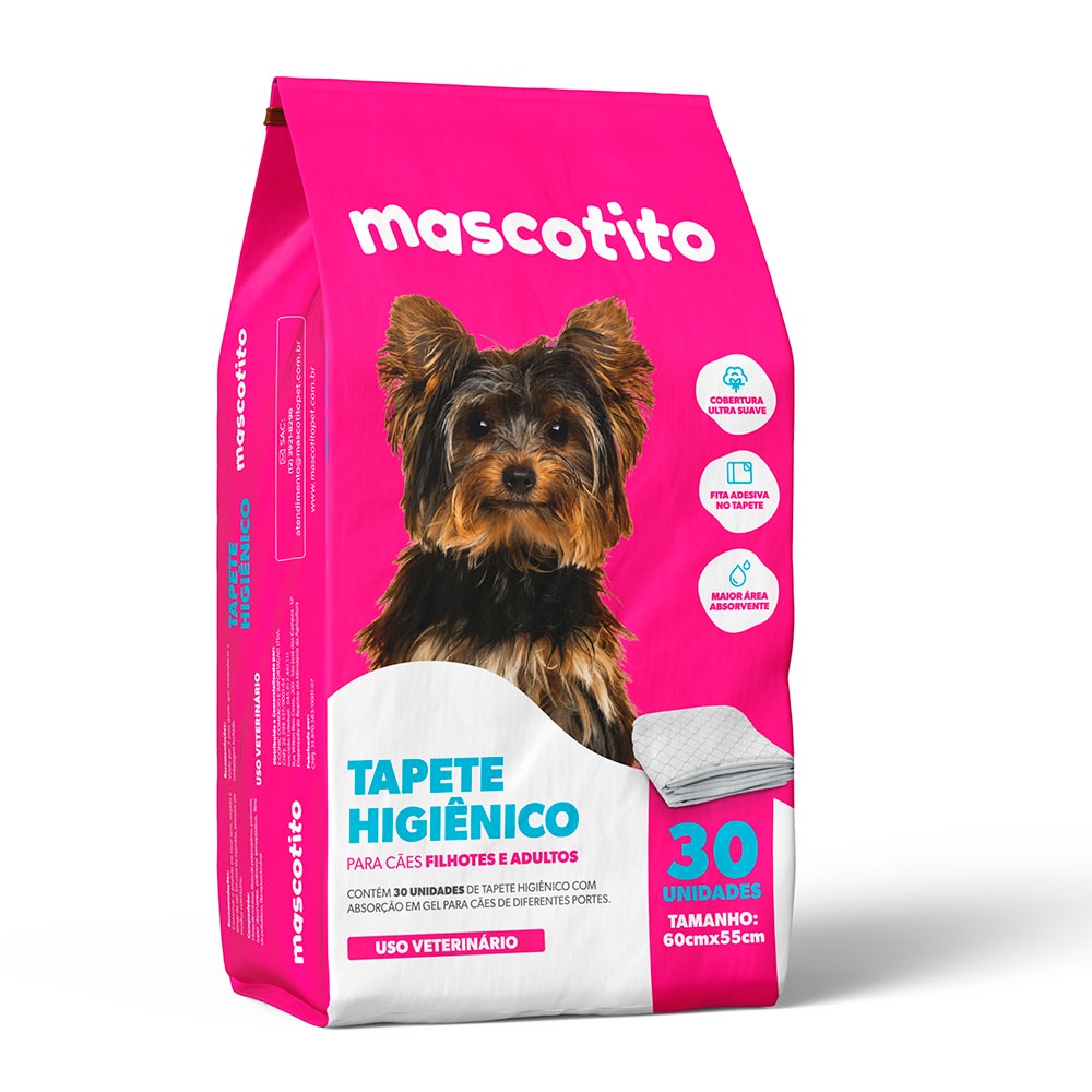 Kit 2 Tapete Higiênico Mascotito 60x55cm C/30 Unidades O Tapete Higiênico Mascotito é indicado para cães filhotes e adultos de pequeno porte. Ele possui uma alta tecnologia com extra gel, garantindo uma máxima proteção contra vazamentos. O tapete pode ser utilizado tanto em casa como em apartamentos. Desenvolvido com matérias de qualidade, resultando em um produto discreto, de fácil armazenamento proporcionando absorção na medida certa. Sua fabricação conta com 6 camadas de proteção e canais de absorção que garantem uma maior velocidade na absorção do xixi. Além disso conta com 4 fitas reposicionáveis. Modo de usar Tire o tapete da embalagem. Desdobre-o. Retire os papéis aplicados nos 4 cantos da parte inferior do tapete e fixe-o no chão com o lado dos adesivos voltados para baixo.