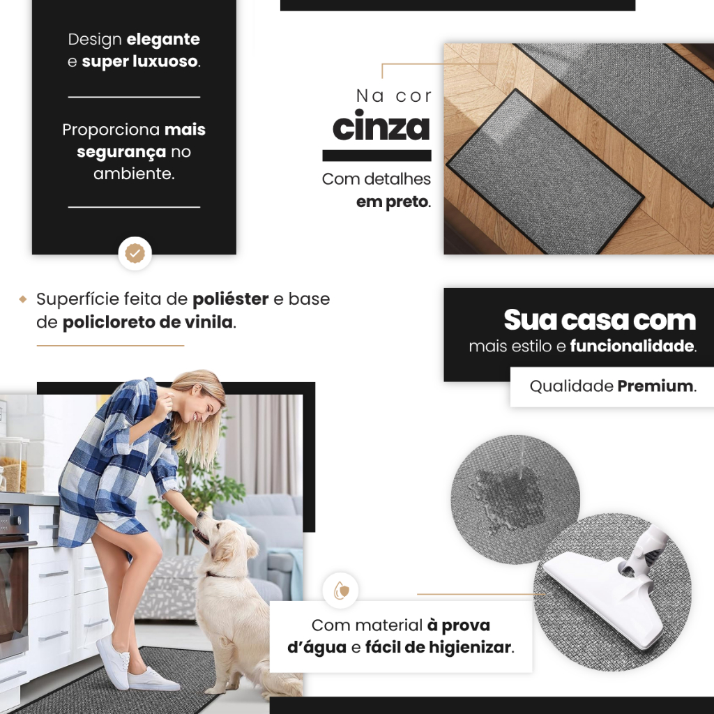 | Kit 2 Tapetes de Cozinha 50x70 e 60x180cm Multi Cinza Antiderrapant... este produto | R$ 244,10 | 21% | 5.0/5 | — |