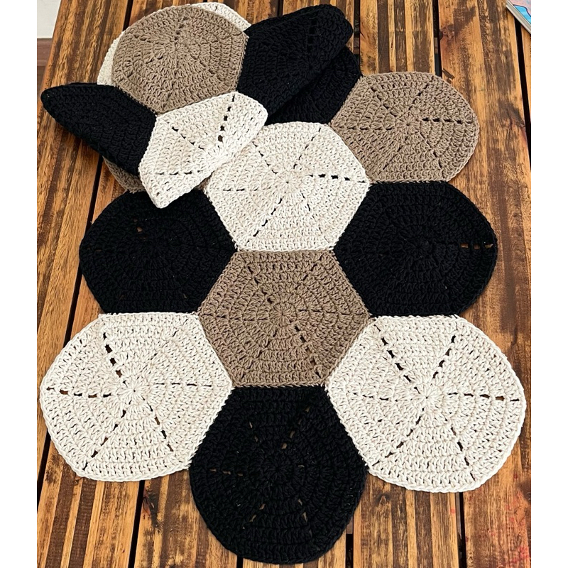 Tapete de crochê, modelo hexágonos, barbante euroroma 6 aproximadamente 60cm perfeito para banheiros, lavabos, porta de entrada fácil lavagem, utilizando o ciclo delicado da máquina de lavar