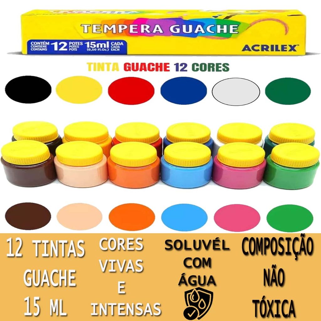 | Kit 2 Telas 20x30cm + 2 Pinceis + Tinta Guache 12 Cores este produto | R$ 51,90 | — | 5.0/5 | 9 |