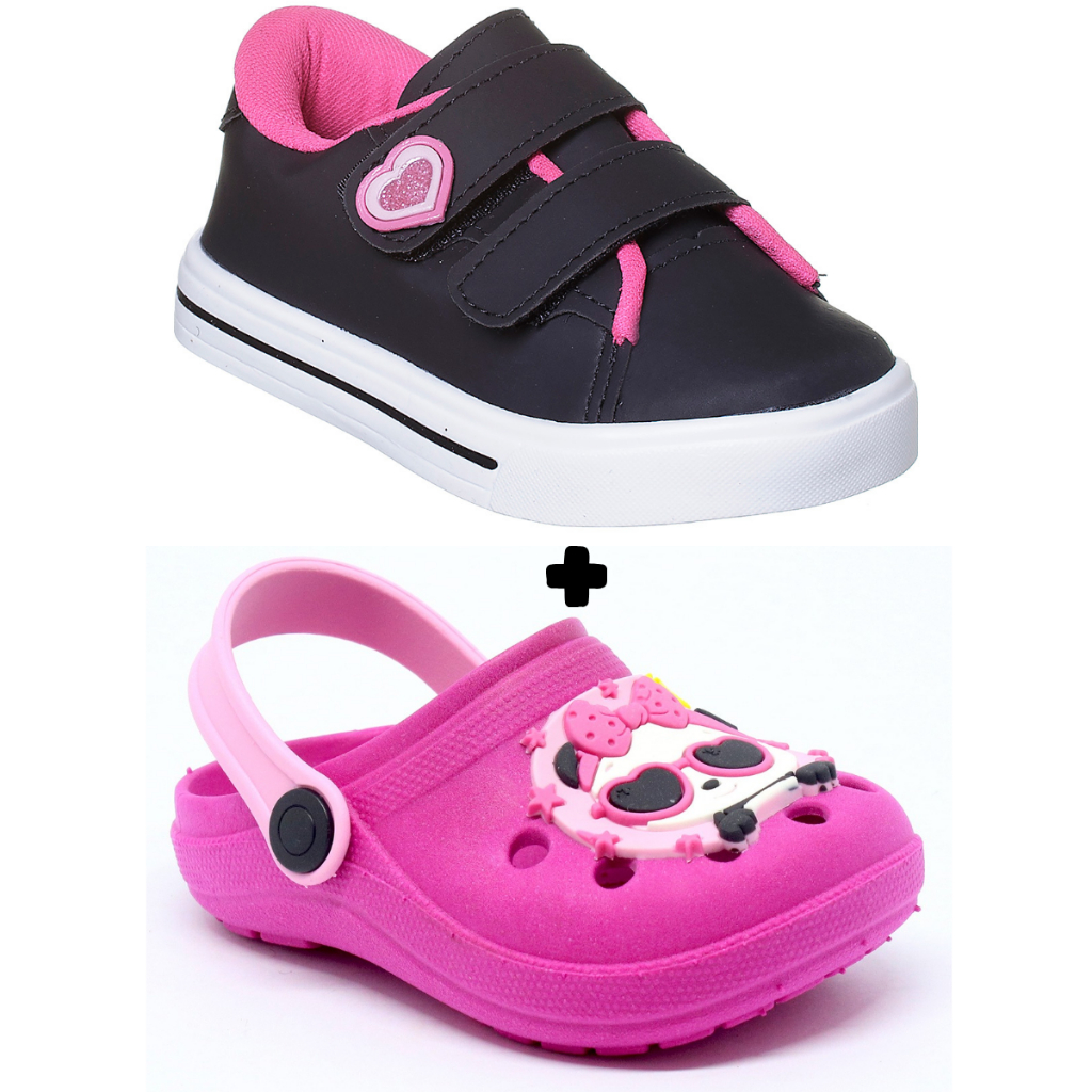 Kit 2 tênis infantil menina mais sandália infantil babuche moda escolar