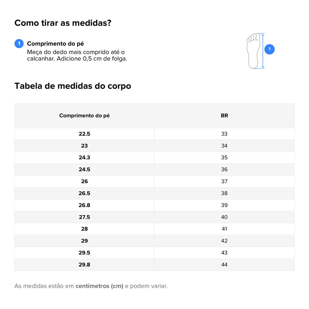 Tabela rápida para você comparar este item com outros similares de Tênis dentro do nosso catálogo.