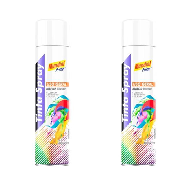 Kit 2 Tinta Spray Branco Mundial Prime - 400ml