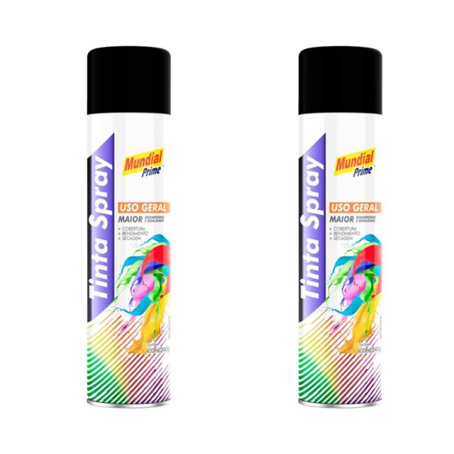 Kit 2 Tinta Spray Mundial Prime Preto Fosco – 400ml