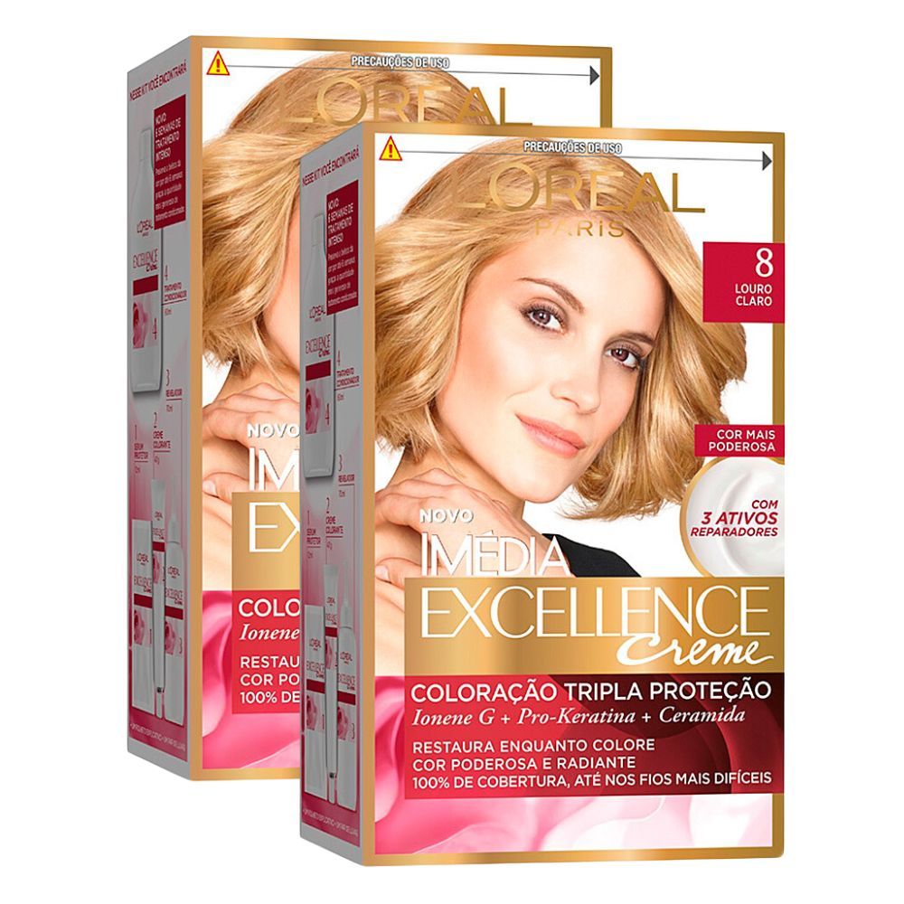 Kit 2 Tintura Creme Imédia Excellence L'oréal Louro Claro 8 Kit