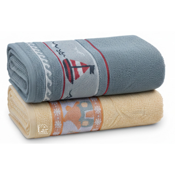 DESCRIÇÃO : Jogo/Kit infantil 2 Toalhas de Banho Grande Macia Premium para criança As toalhas Soft Baby são trabalhadas em jacquard, felpudas com barra aveludada e extra maciez, 100% Algodão (Exceto Barra Decorativa), hipoalergênica, fio 24 retorcido, disponível no tamanho 68cm x 1,10m com gramatura de 390g/m². **Instruções de Uso e Conservação:** - Temperatura máxima de lavagem 30°C (Processo normal); - Não alvejar (Não branquear); - Não secar em tambor; - Temperatura máxima da base do ferro a 110°C (vapor pode causar danos irreversíveis); - Não limpar a seco; - Secagem em Varal; - Limpeza a úmido profissional (Processo Normal); - Lavar sempre antes de usar; - Lavar separadamente das peças coloridas. Conforto e delicadeza para a hora do banho de quem você ama! Atenção: Devido a variação de modelos de monitores, as cores podem variar com a cor real do produto.
