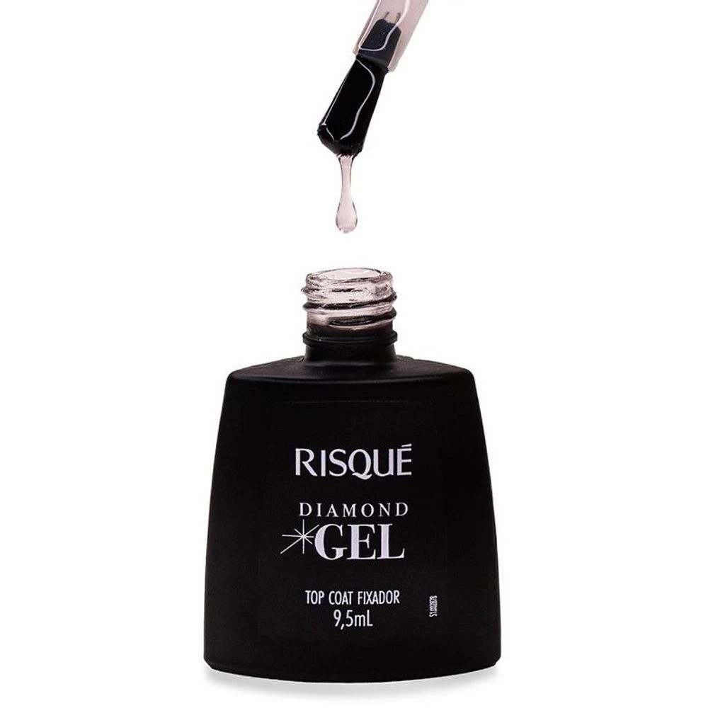 Kit 2 Top Coat Efeito Cristal + Fixador. - O Top Coat Fixador Risqué Diamond Gel Cremoso é perfeito para você que não abre mão de unhas belas e com muito brilho. Sua fórmula hipoalergênica, além de ser livre de substâncias que causam alergia, garante o efeito gel nas suas unhas, proporcionando mais durabilidade e cores maravilhosas. Sua embalagem com design inovador, conta com 800 cerdas para garantir maior cobertura. Nada melhor como ter unhas perfeitas e com cara de 'acabei de sair do salão' por muito mais tempo. Benefícios: - Fórmula hipoalergênica; - Possui alto brilho e durabilidade; - Garantir maior cobertura do esmalte. Modo de usar: Passo 1 - Comece agitando bem o esmalte antes de utilizar, depois aplique-o sobre as unhas, se achar necessário, aplique mais uma camada de esmaltes nas unhas até atingir o tom que você mais gostar. Passo 2 - Para garantir o efeito gel, após a aplicação do esmalte com cor (Passo 1), passe o Top Coat Fixador Diamond Gel Risqué (Passo 2), que foi criado especialmente para proporcionar a durabilidade e alto brilho nas unhas. Pronto, só aguarde a secagem. - O Top Coat Fixador Risqué Diamond Gel Efeito Cristal 9,5ml promove um brilho transformador imediato nas suas unhas! Desenvolvido especialmente para proporcionar durabilidade e ultra brilho com um efeito paetê, ele conta com um pincel de 800 cerdas que facilita a esmaltação, garantindo uma aplicação perfeita. Para obter o melhor resultado, aplique a cor escolhida de Risqué Diamond Gel e, em seguida, finalize com o Esmalte Risqué Diamond Gel Top Coat Cristal 9ml. Sua fórmula é hipoalergênica, livre de substâncias que podem causar alergias. Benefícios: - Promove brilho; - Durabilidade; - Ultra brilho; - Hipoalergênico. Modo de usar: Aplique sobre as unhas. Agite antes de usar. Para uma efeito gel, aplicar mais top coal fixador a cada 3 dias