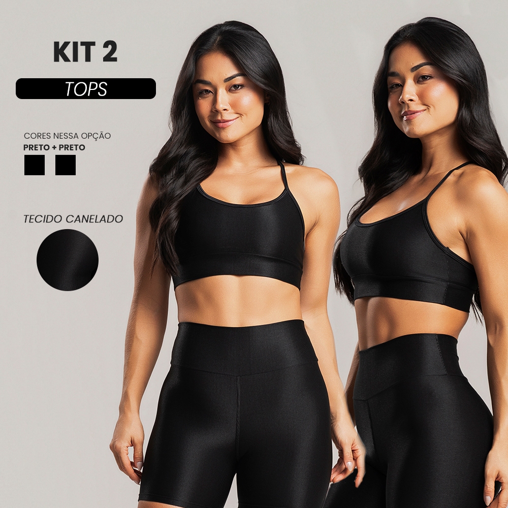 Kit 2 Top fitness feminino academia canelado brilhoso