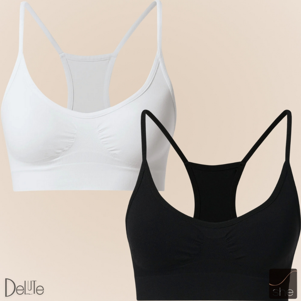 Kit 2 Top Fitness Sport Nadador SHE Em Microfibra Sem Costura Sem Bojo Para Exercicios P ao GG