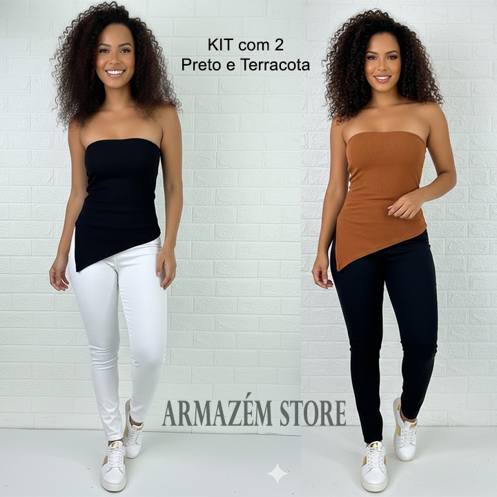 Kit 2 Tops Tomara Que Caia Assimétrico Anarruga Premium Feminino Verão Tendência 2026 Envio Rápido