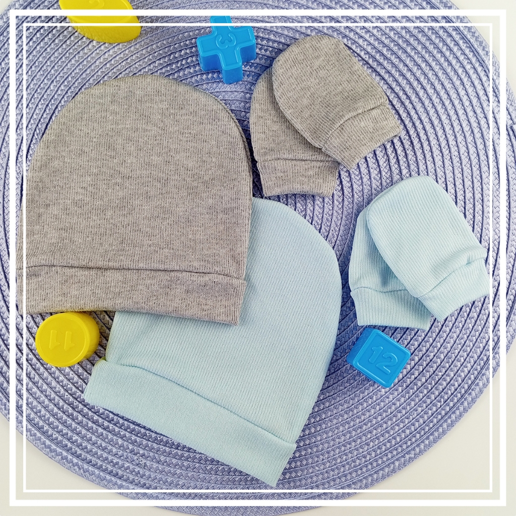 Kit 2 Touca e 2 Luvinha Bebê Recém Nascido RN (4 pç) Enxoval Maternidade Malha Canelada Confortável