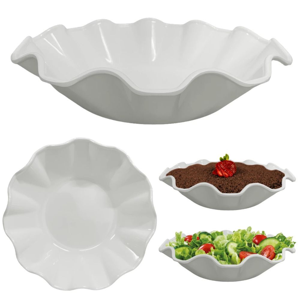 Kit 2 Travessas Redondas Brancas para Salada Buffet Melamina/ Plástico