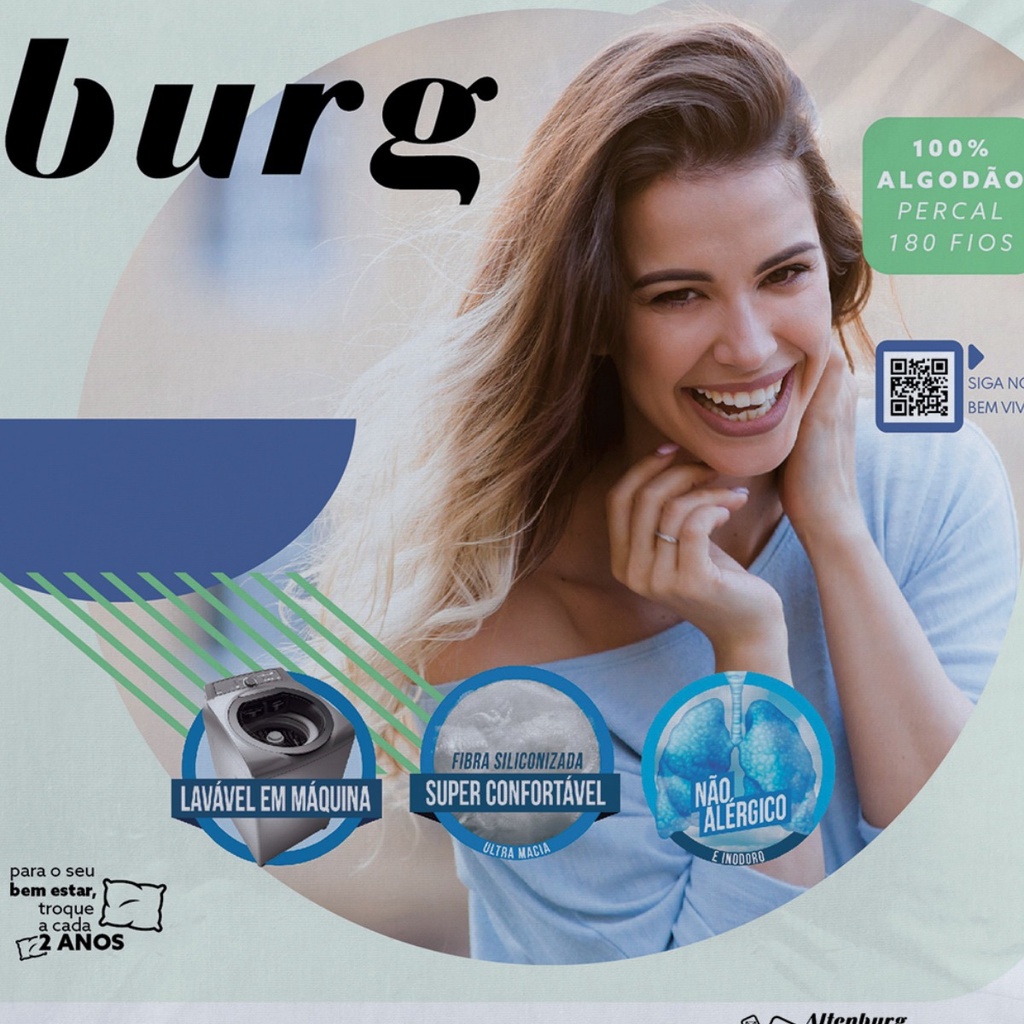 EMBALAGEM NOVA CONFORME PRIMEIRA FOTO Contém 2 travesseiros! Travesseiro Royal Altenburg 180 Fios 100% Algodão – 50x70cm Conforto e qualidade para suas noites de sono! O Travesseiro Royal Altenburg possui revestimento em tecido 100% algodão com 180 fios, garantindo toque macio e respirabilidade. Seu enchimento em fibras poliéster proporciona suporte confortável, ideal para relaxar com suavidade. Um modelo clássico e elegante para complementar seu enxoval com sofisticação. Características: Medida: 50x70cm Tecido: 100% algodão, 180 fios Enchimento: 100% poliéster Toque macio e confortável Ideal para quem busca qualidade e suavidade ao dormir.