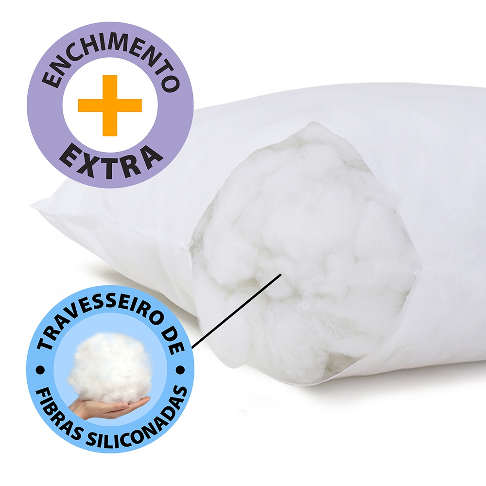 Kit 2 Travesseiros Macio de Fibras Siliconadas Lavável Toque Suave 50x70cm BF Colchões