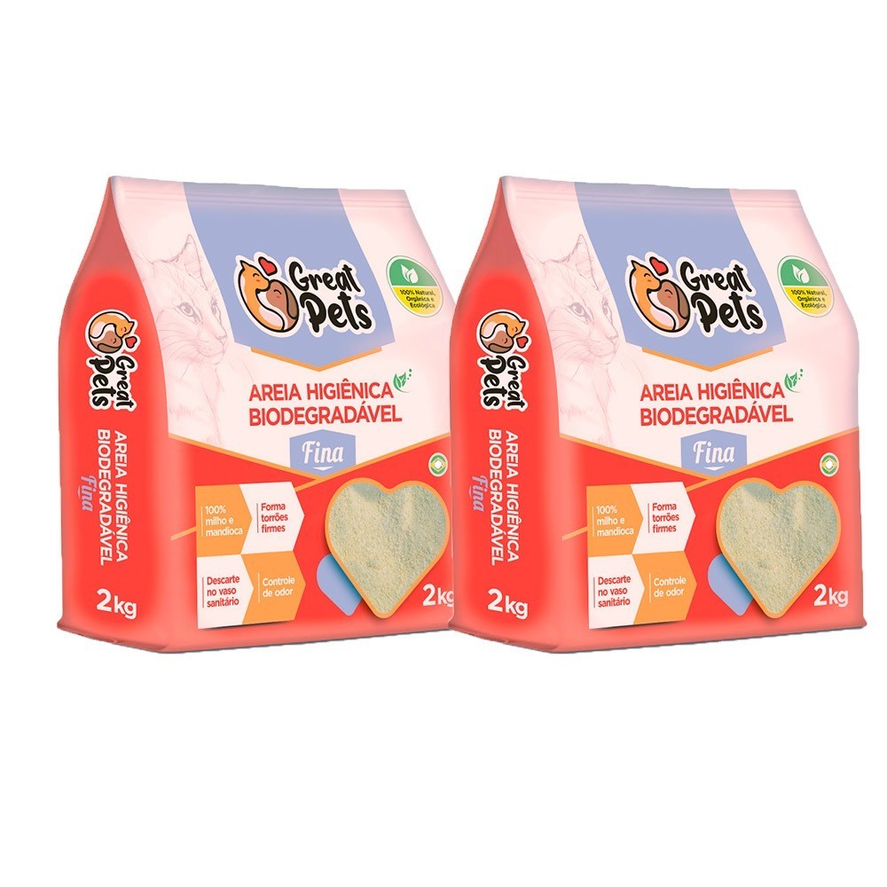 Kit 2 un. Areia Higiênica Biodegradável Para Gatos Great Pets Fina 2kg