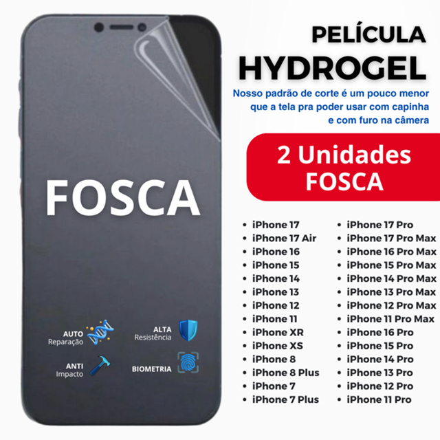 Kit 2 Un - PelÍcula Hidrogel PREMIUM FOSCA Anti Impacto FLEXÍVEL para iPhone 17.16.15.14.13.12.11.